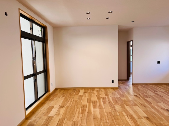 白を基調とした壁紙と併せると、木目がしっかりと強調されて温もりある住宅へと変貌しました。